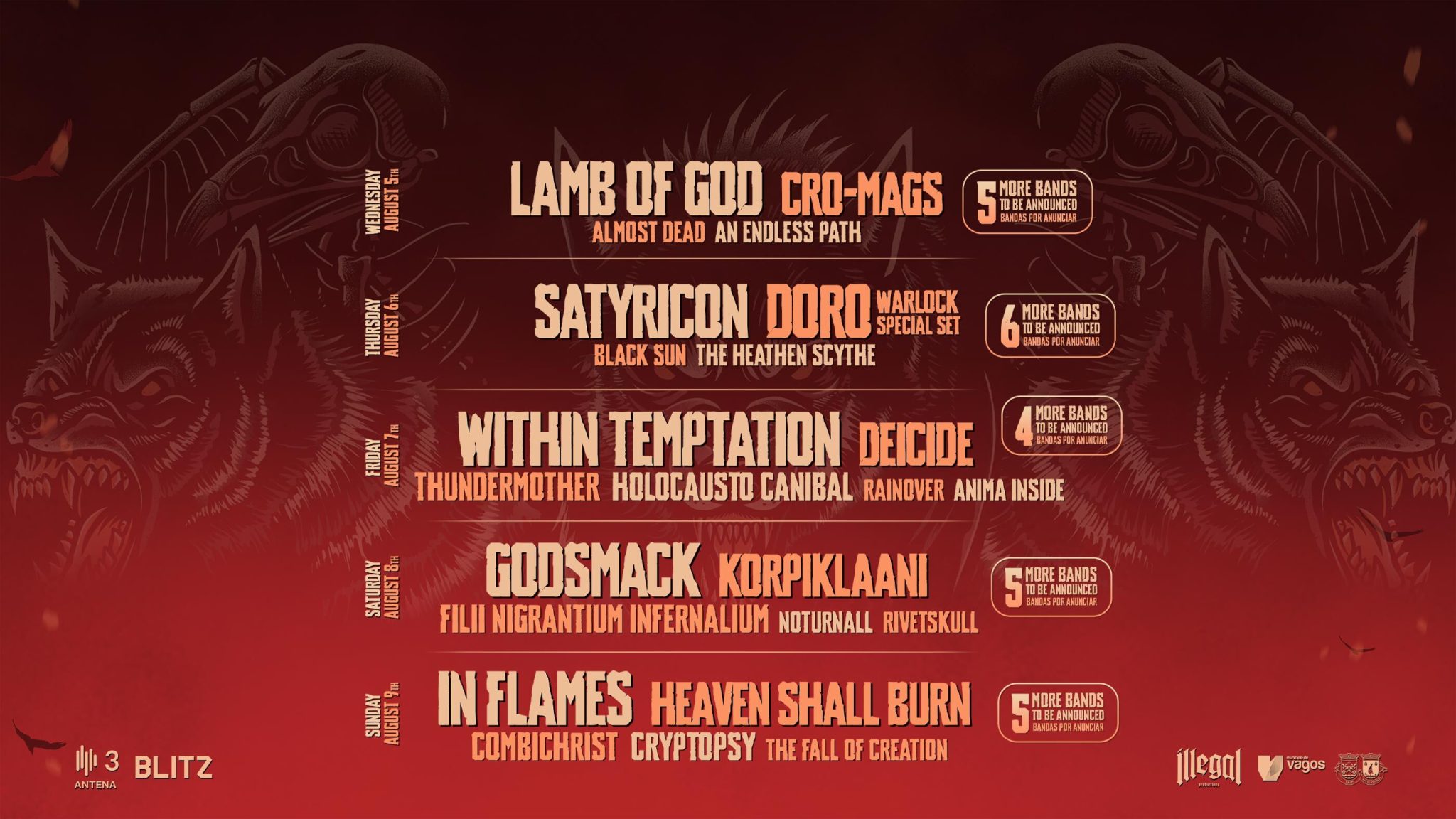 VAGOS METAL FEST 2026: LAMB OF GOD e WITHIN TEMPTATION confirmados como cabeças-de-cartaz; festival cresce com dois dias extra